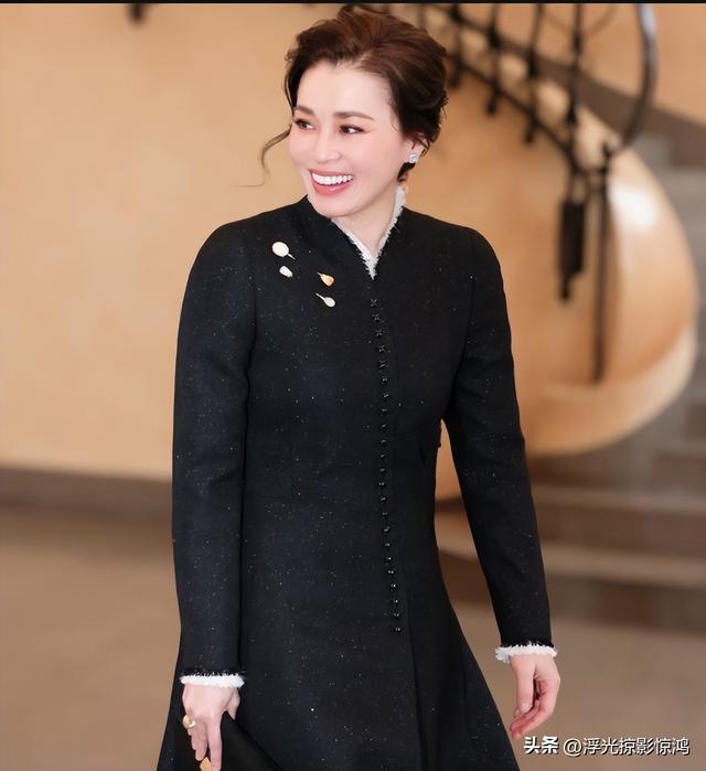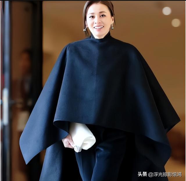 苏提达脚踩10厘米高跟鞋,走在故宫的青砖上,黑色斗篷大衣与帽子的搭配,真是绝了。