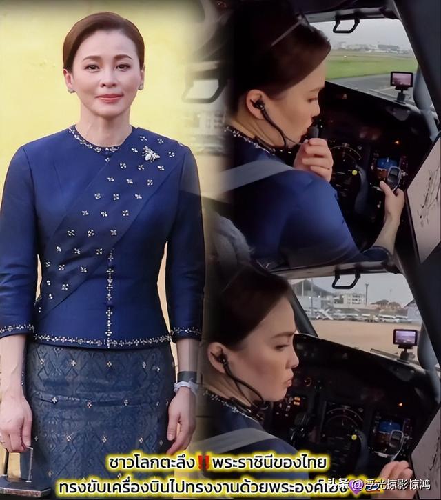 她能上天开飞机,有商业飞机驾驶执照,出访不丹和老挝,苏提达都是坐在副驾驶上,配合主机师泰王玛哈,夫妇同心在蓝天白云下翱翔,帅出天际。
