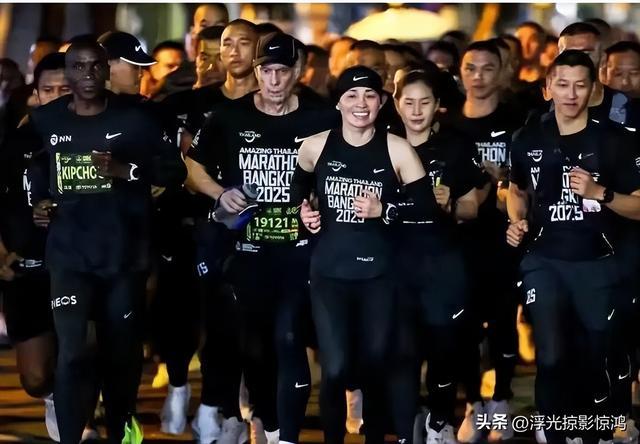 她能打冰球,上场挥杆英姿飒爽,她还能跑半程马拉松,拉上奥运冠军陪她跑完比赛,气血充足到满脸汗水。